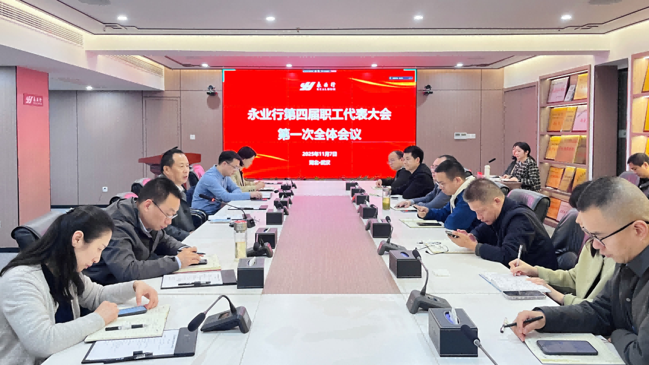 2025年11月7日,永业行召开第四届职工代表大会第一次全体会议。永业行党委书记、董事长潘世炳及等各高管出席会议。永业行常务副总裁、工会主席文云波主持会议。来自总、分部78名职工代表以线上线下形式参加会议。